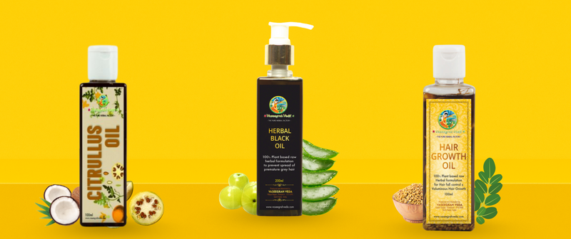 "Restore natural black shine with our Herbal Black Oil. Prevents greying and deeply nourishes every strand."